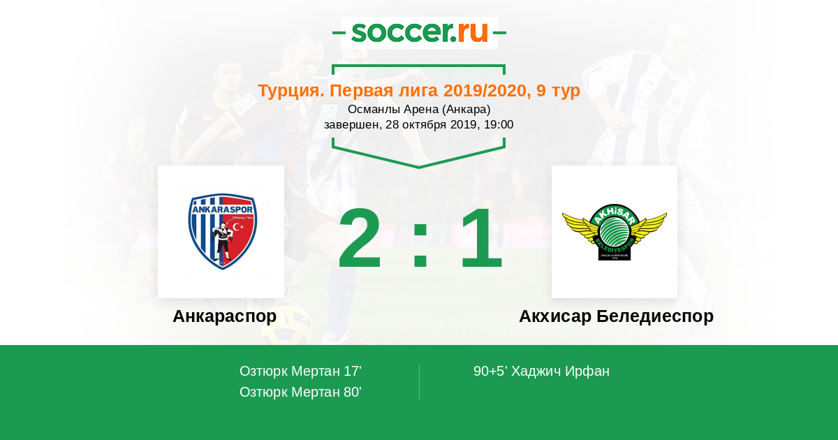 Протокол матча Османлыспор против Акхисар Беледиеспор