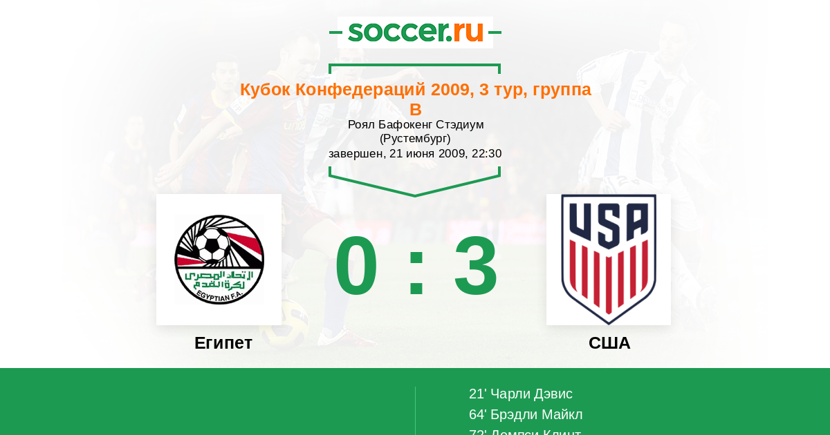Протокол матча Египет против США