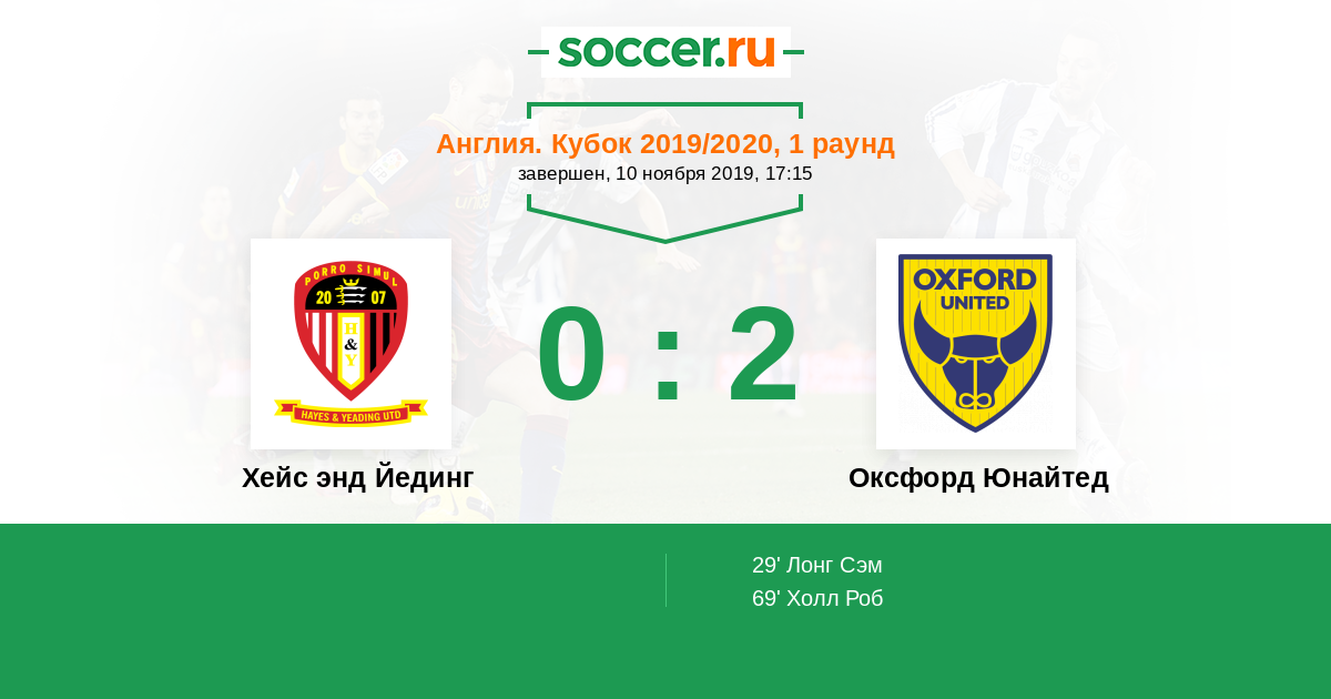 Протокол матча Хейс энд Йединг против Оксфорд Юнайтед