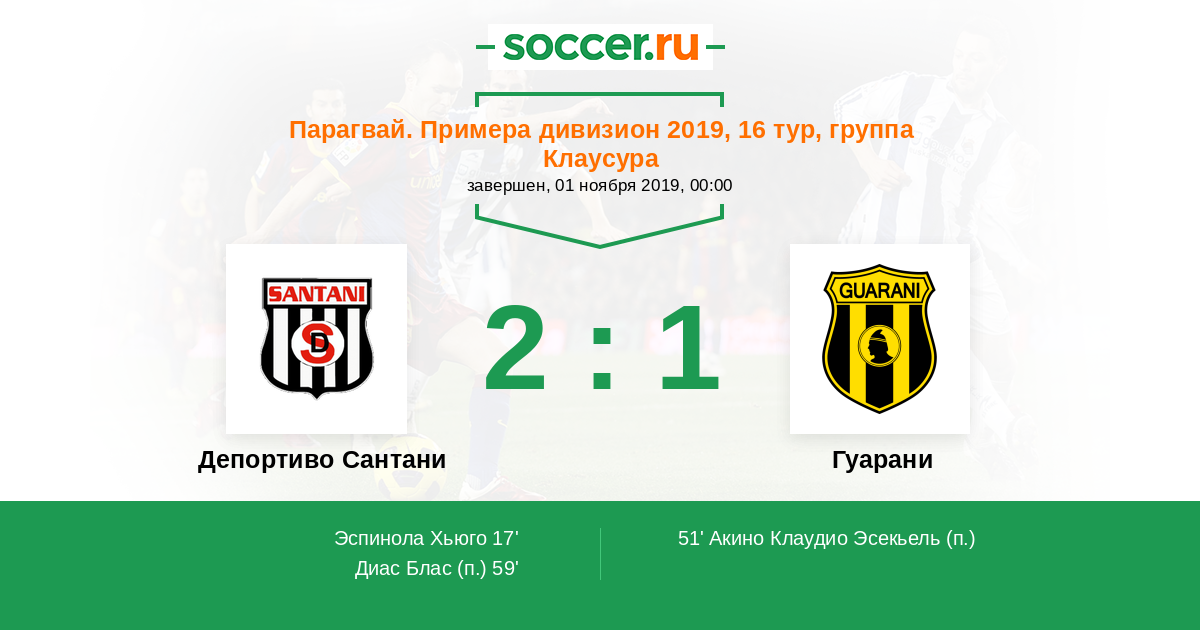 Протокол матча Депортиво Сантани против Гуарани
