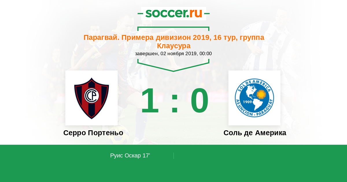 Протокол матча Серро Портеньо против Соль де Америка