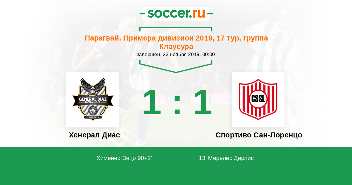 Протокол матча Хенерал Диас против Спортиво Сан-Лоренцо
