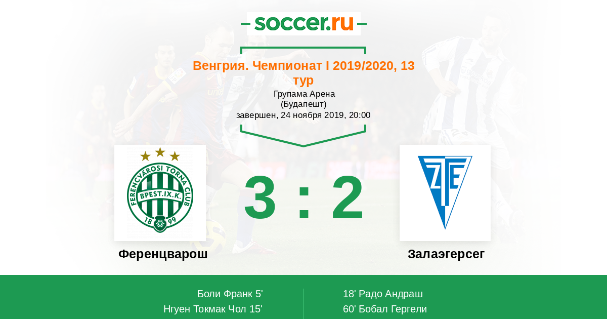 Протокол матча Ференцварош против Залаэгерсег