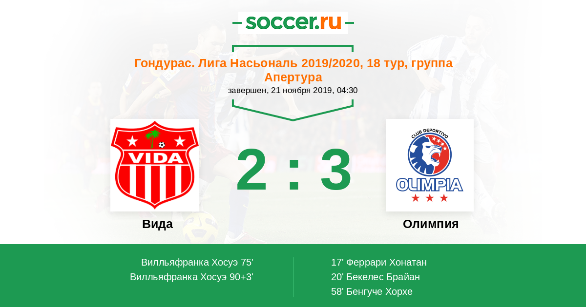 Протокол матча Вида против Олимпия