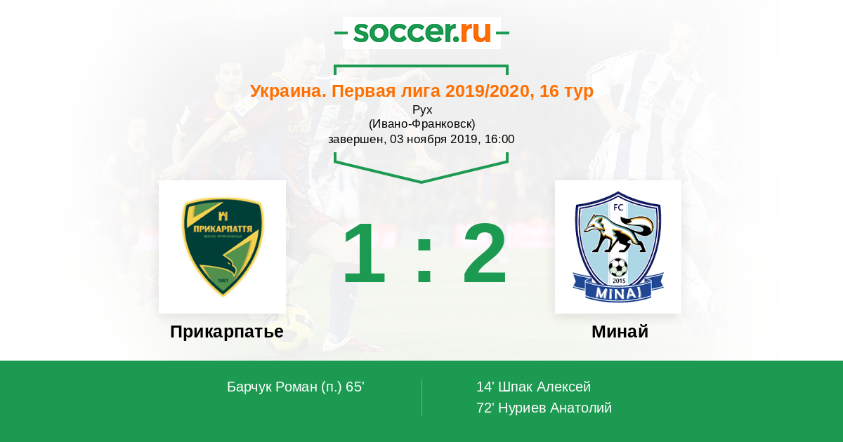 Протокол матча Прикарпатье против Минай