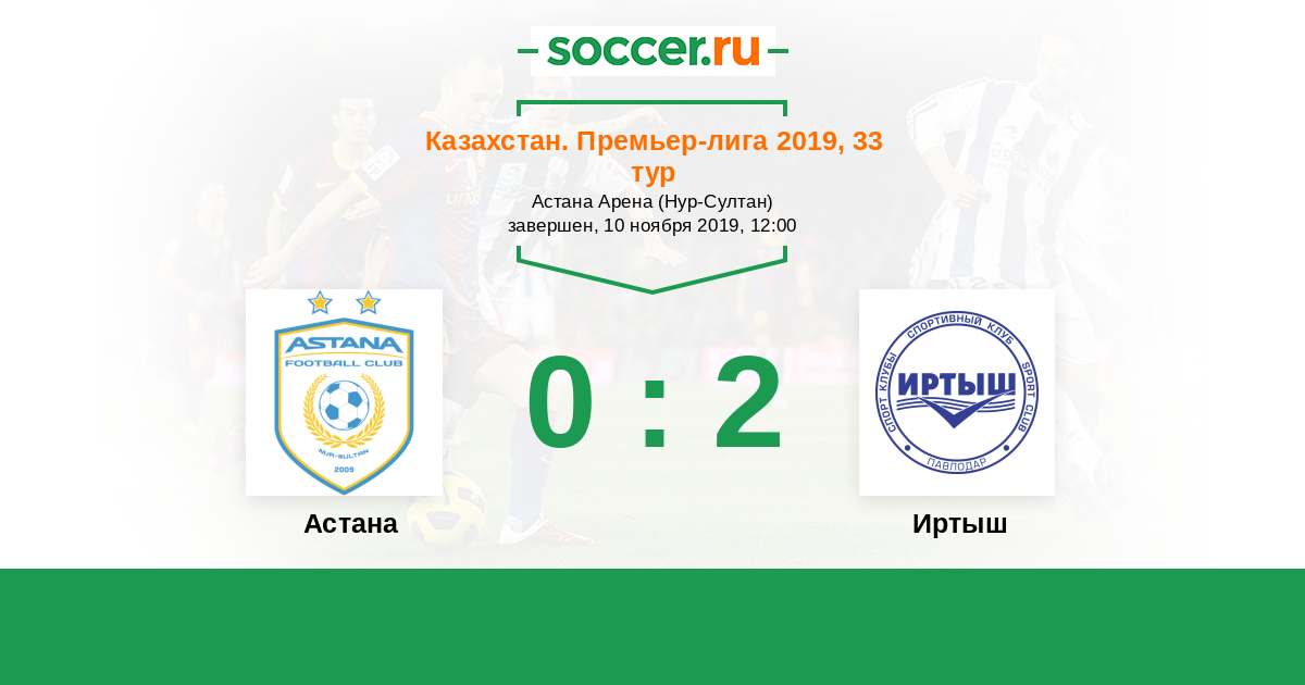 Расстановка матча Астана против Иртыш