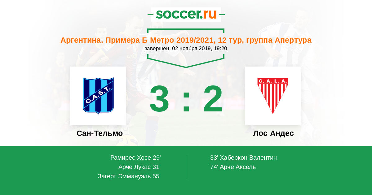 Протокол матча Сан-Тельмо против Лос Андес