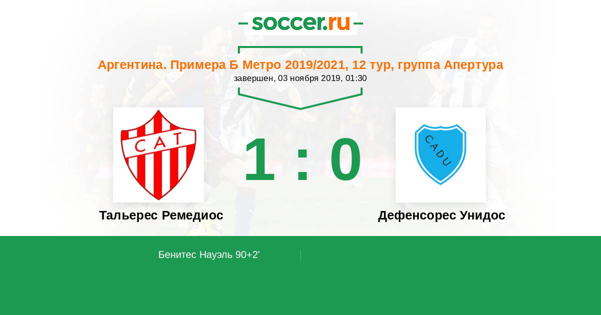 Протокол матча Тальерес Ремедиос против Дефенсорес Унидос