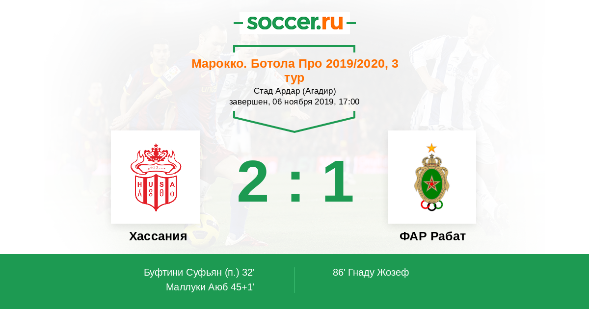 Протокол матча Хассания против ФАР Рабат