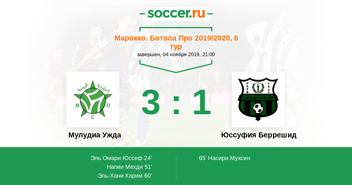 Протокол матча Мулудиа Ужда против Юссуфия Беррешид