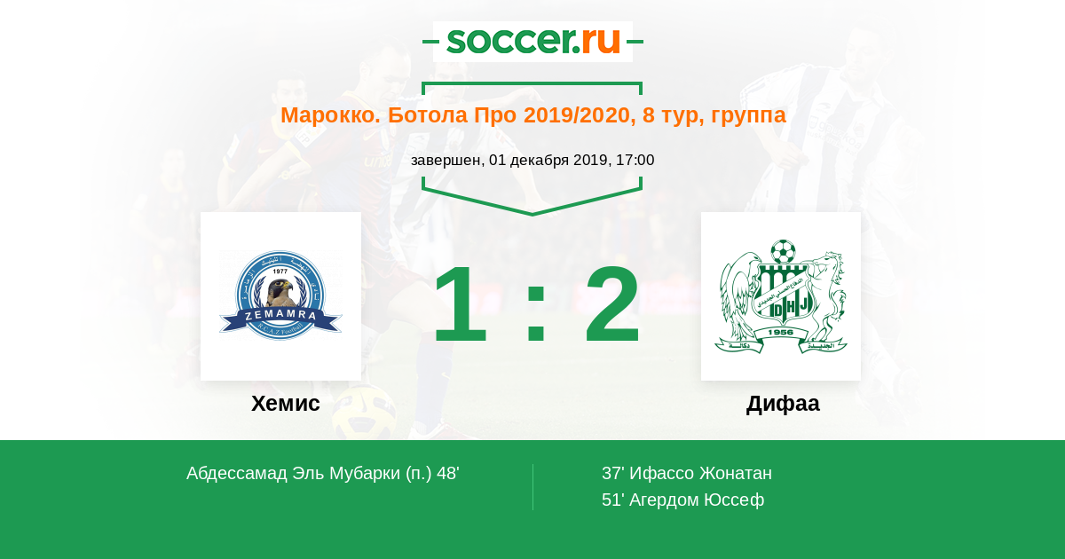51' (1:2) Агердом Юссеф (5) (Хадраф Абдельфаттах (40))