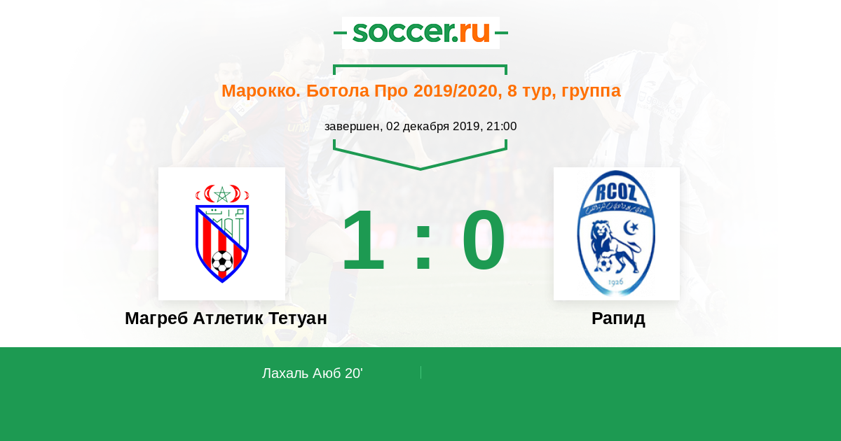 Протокол матча Магреб Атлетик Тетуан против Рапид