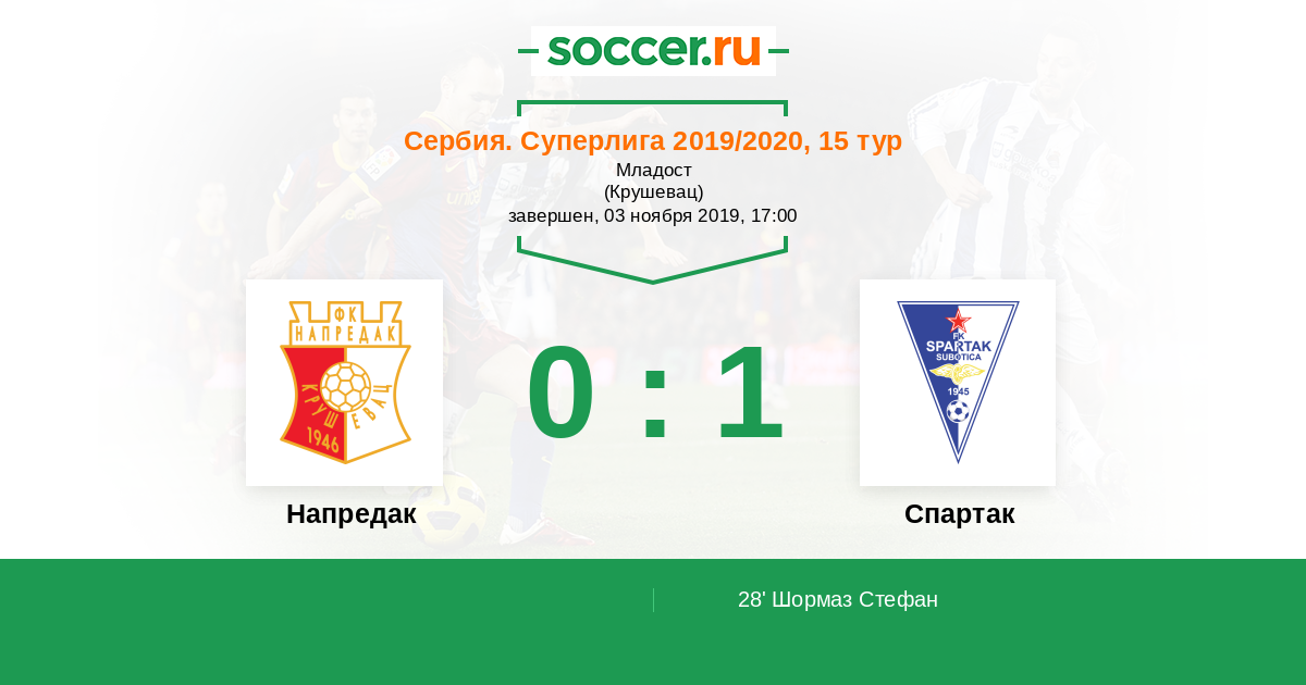 Протокол матча Напредак против Спартак Суботица