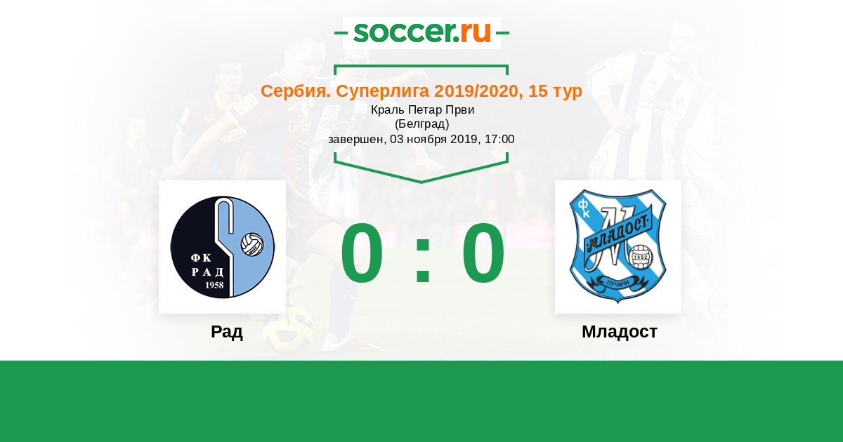 Протокол матча Рад против Младост