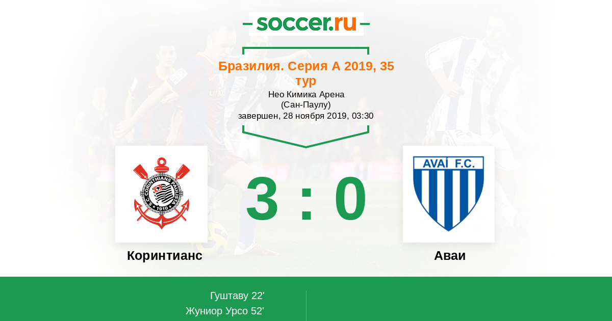 52' (2:0) Жуниор Урсо (11) (Гуштаву (19))
