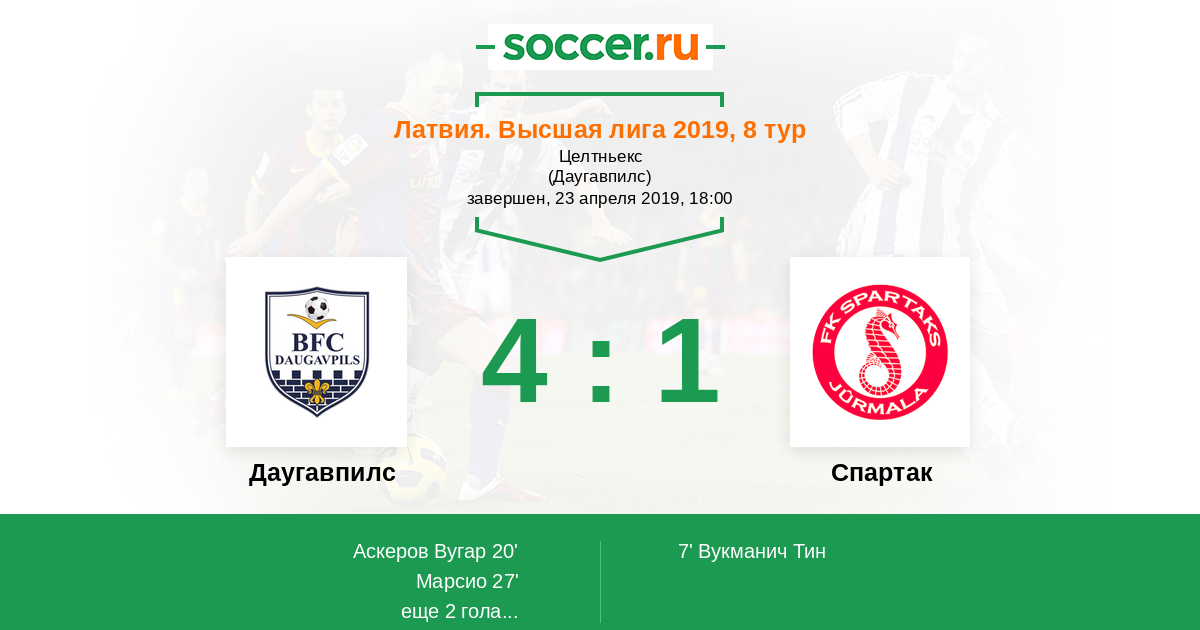 Протокол матча Даугавпилс против Спартак