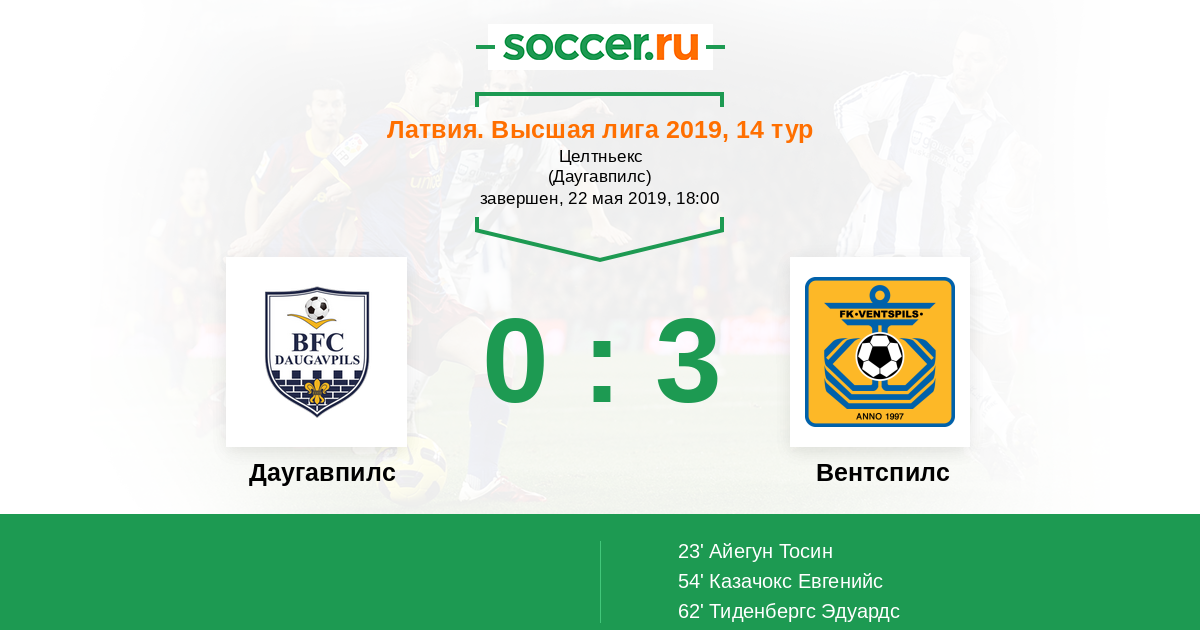 Протокол матча Даугавпилс против Вентспилс