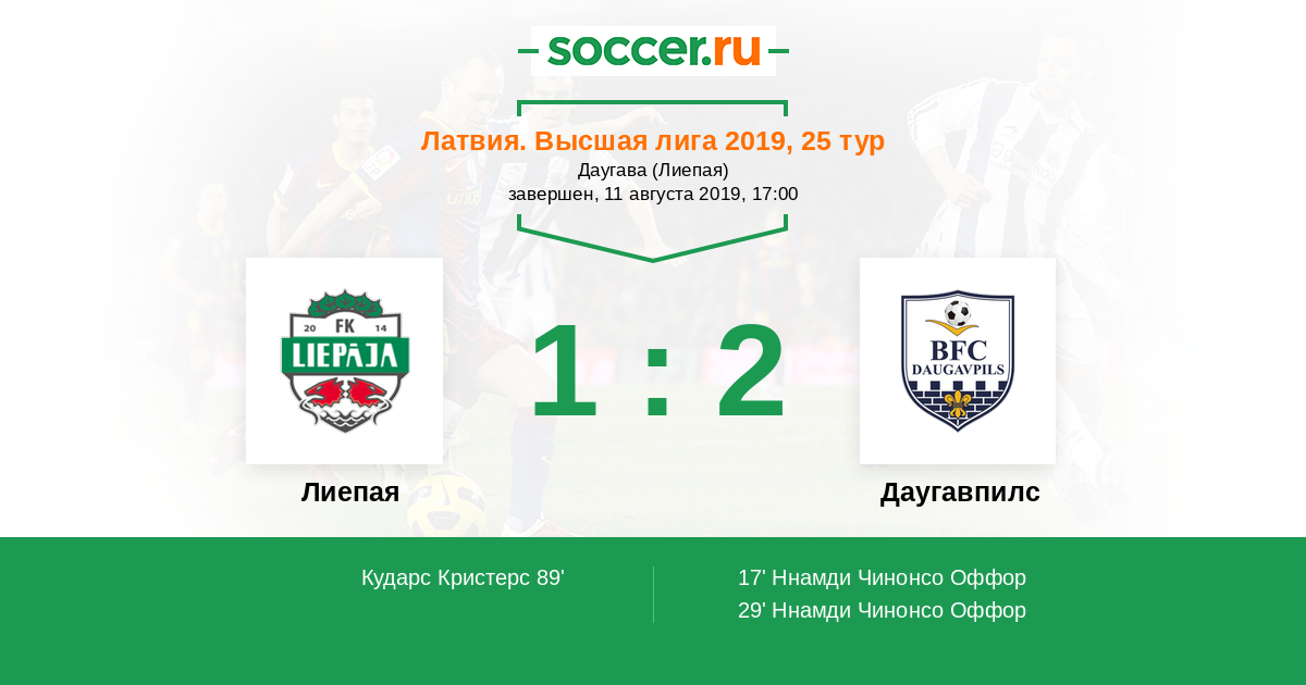 Протокол матча Лиепая против Даугавпилс