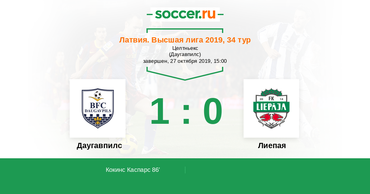 Протокол матча Даугавпилс против Лиепая
