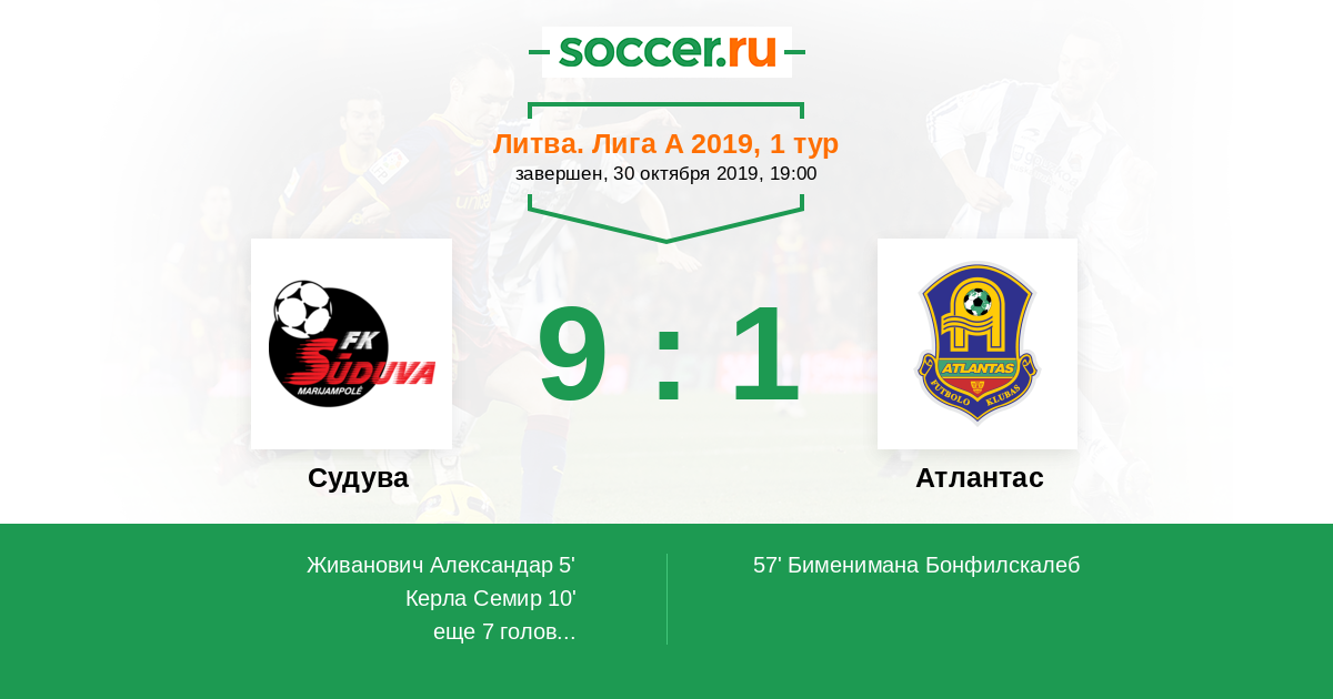 Протокол матча Судува против Атлантас