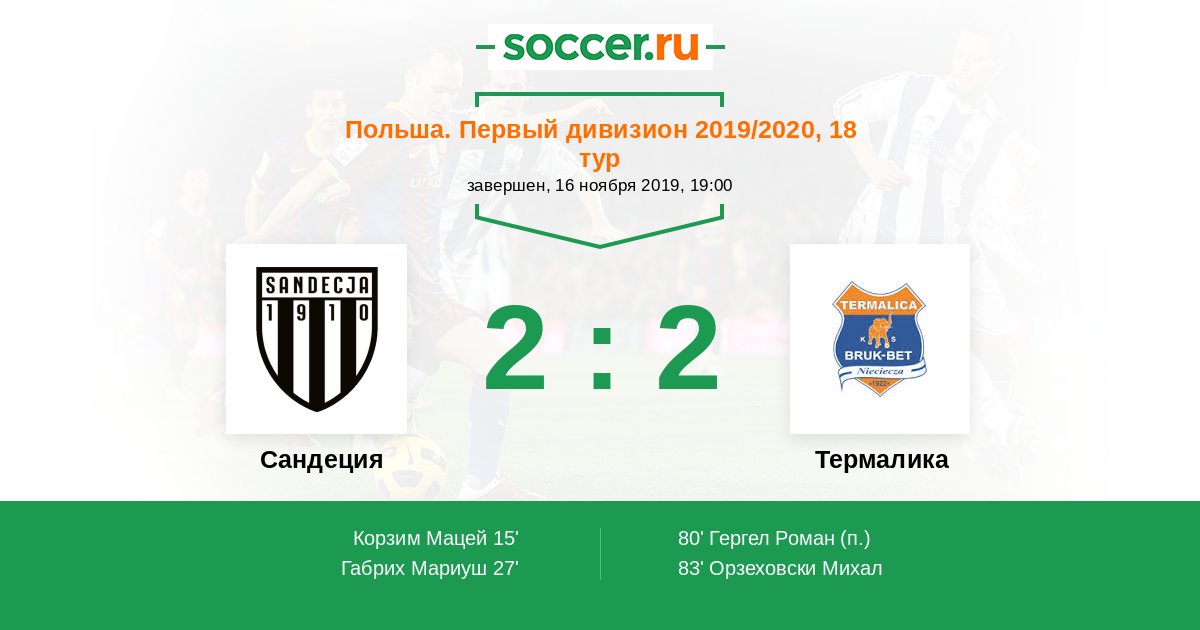 Протокол матча Сандеция против Термалика