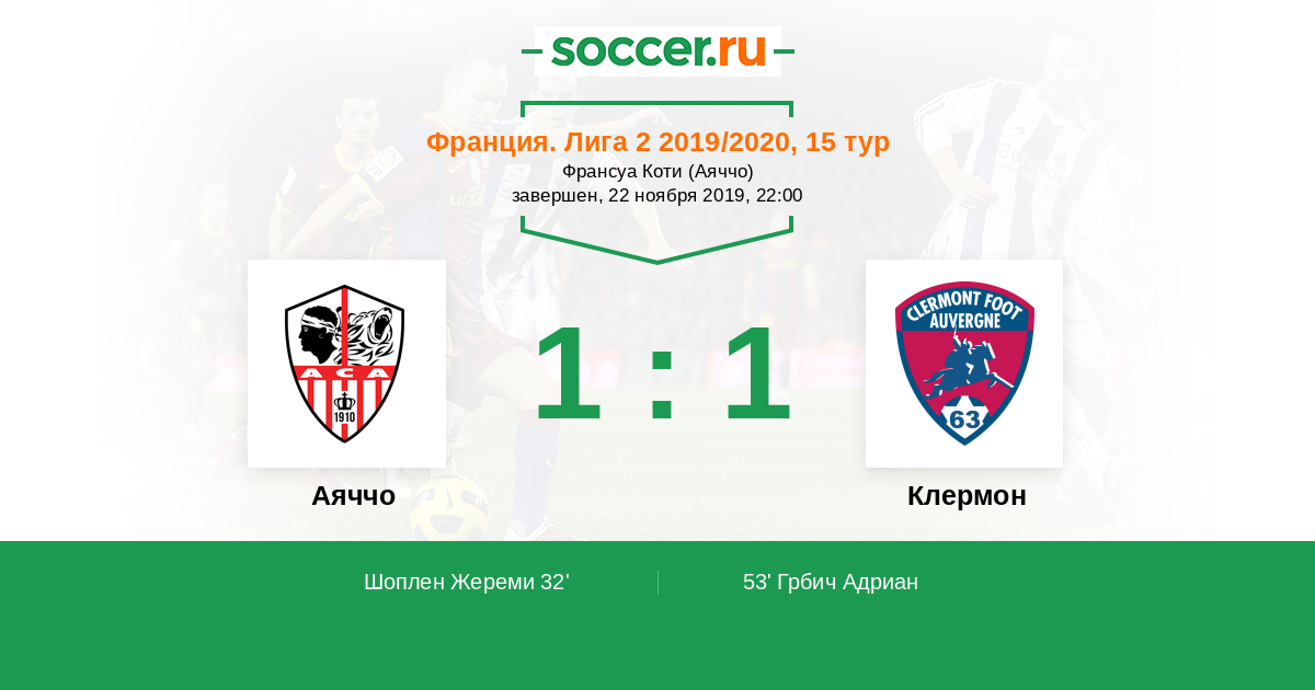 Протокол матча Аяччо против Клермон
