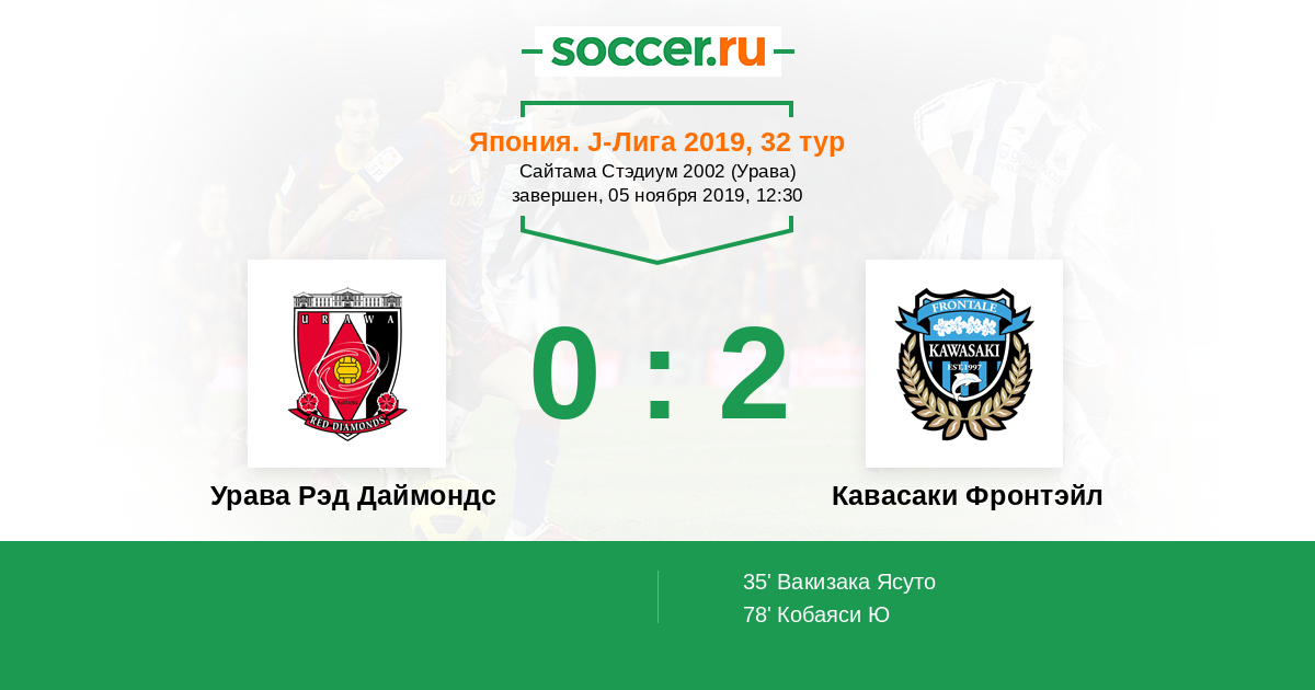 Протокол матча Урава Рэд Даймондс против Кавасаки Фронтэйл