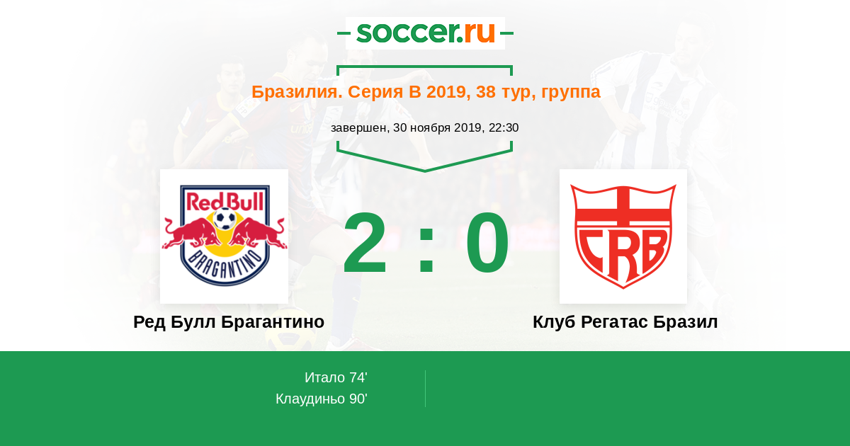 Протокол матча Ред Булл Брагантино против Клуб Регатас Бразил