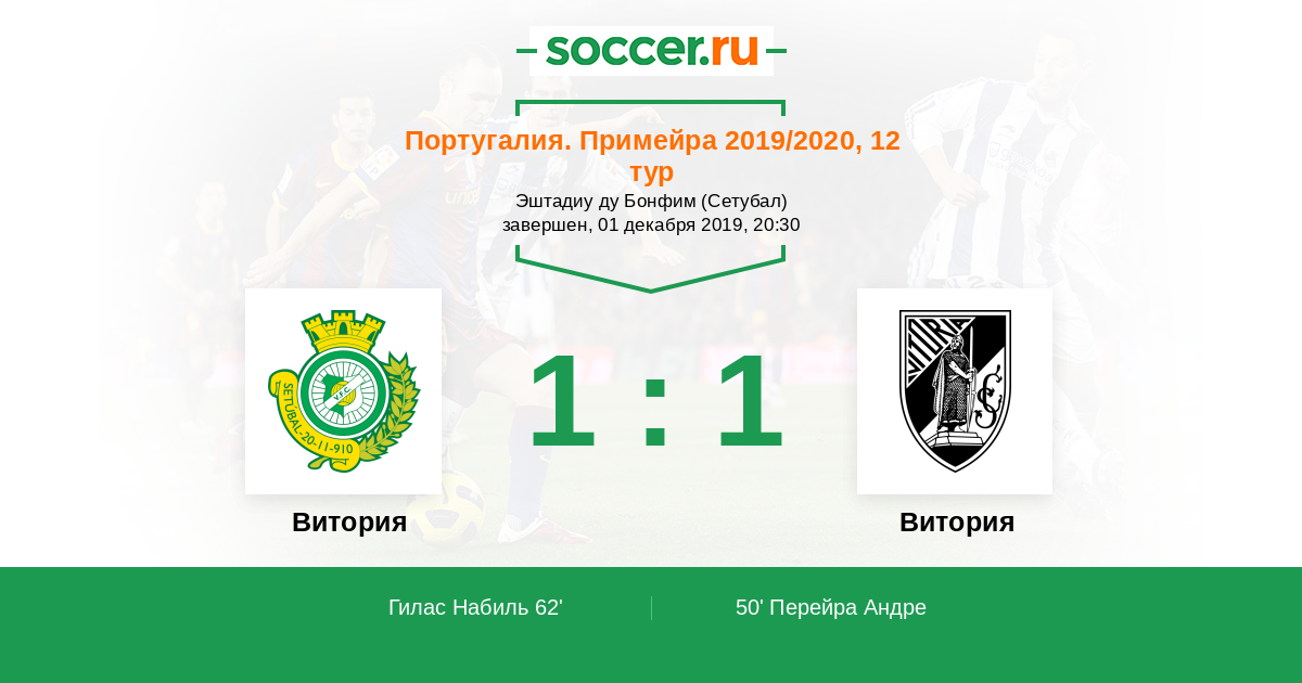 Протокол матча Витория Сетубал против Витория Гимараеш