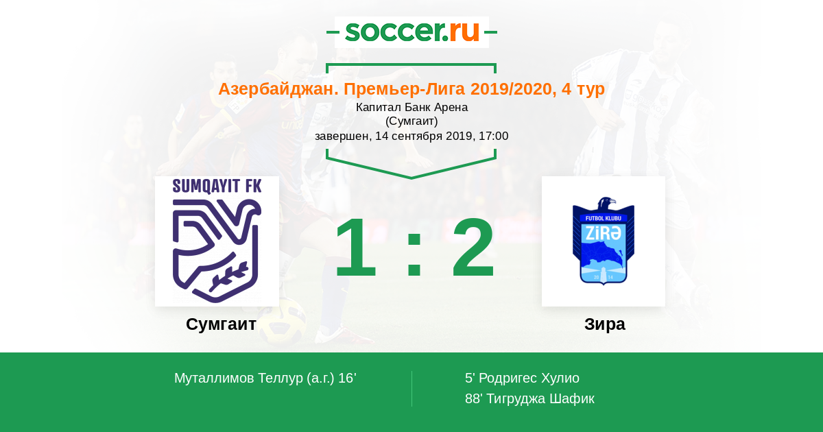 Протокол матча Сумгаит против Зира