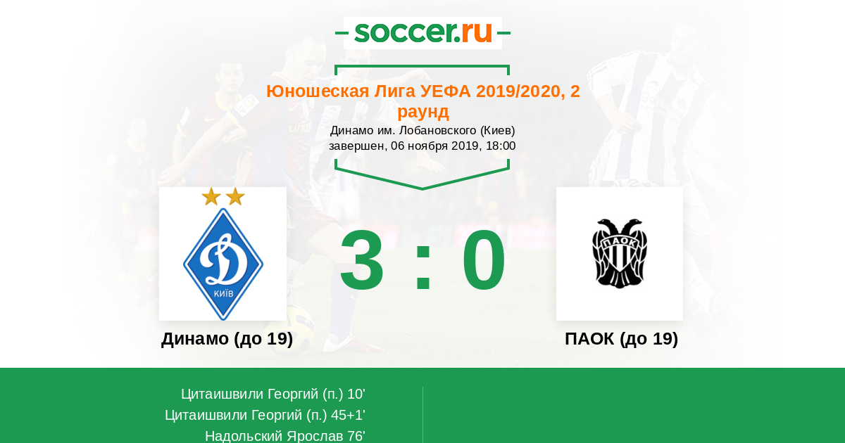 Протокол матча Динамо (до 19) против ПАОК (до 19)