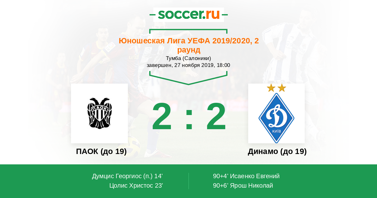 Протокол матча ПАОК (до 19) против Динамо (до 19)
