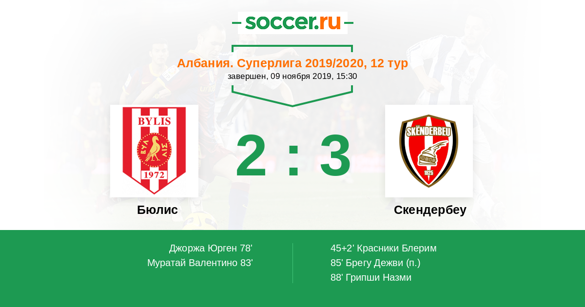 Протокол матча Бюлис против Скендербеу
