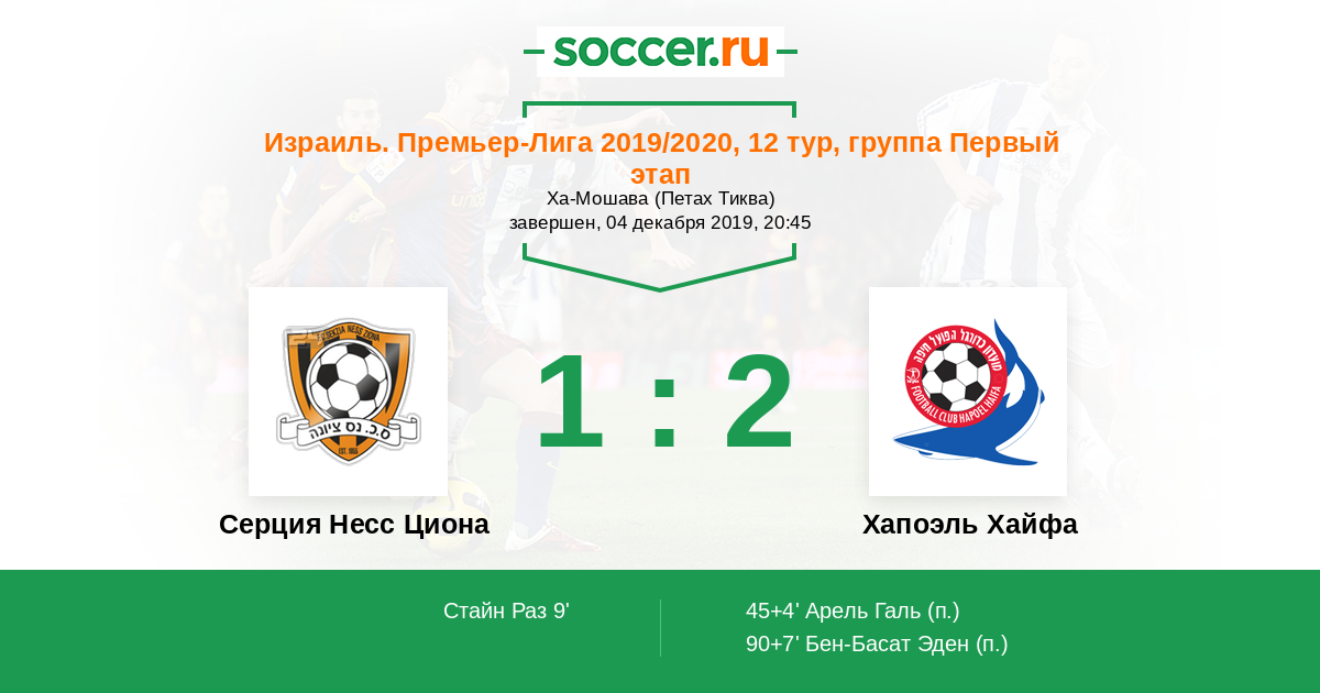Протокол матча Серция Несс Циона против Хапоэль Хайфа