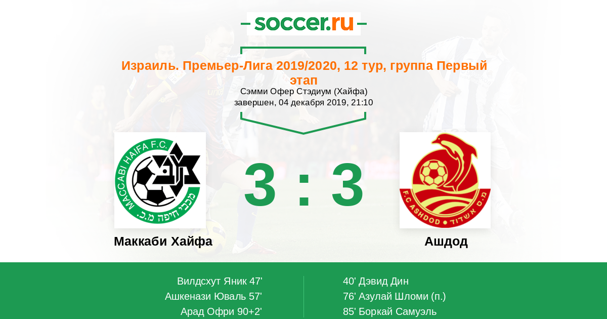Протокол матча Маккаби Хайфа против Ашдод