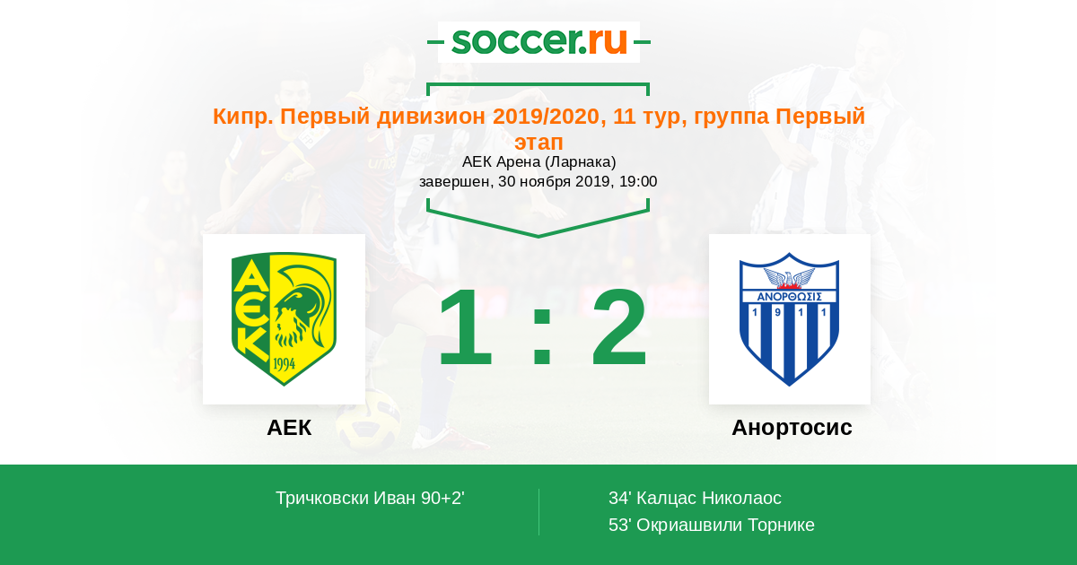 Протокол матча АЕК против Анортосис