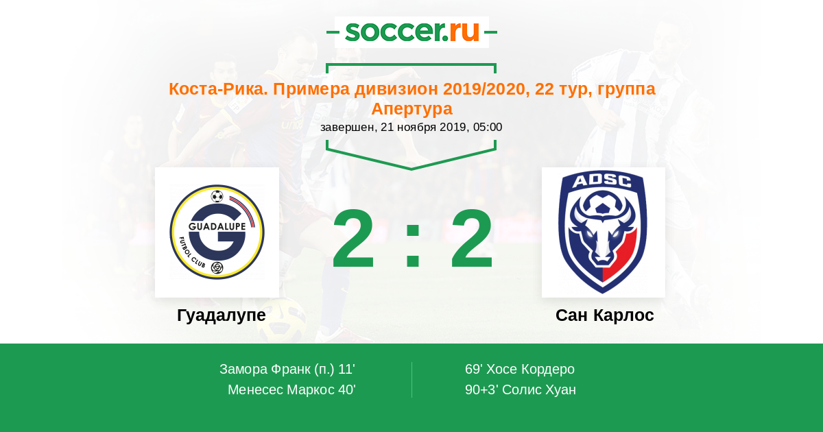 Протокол матча Гуадалупе против Сан Карлос