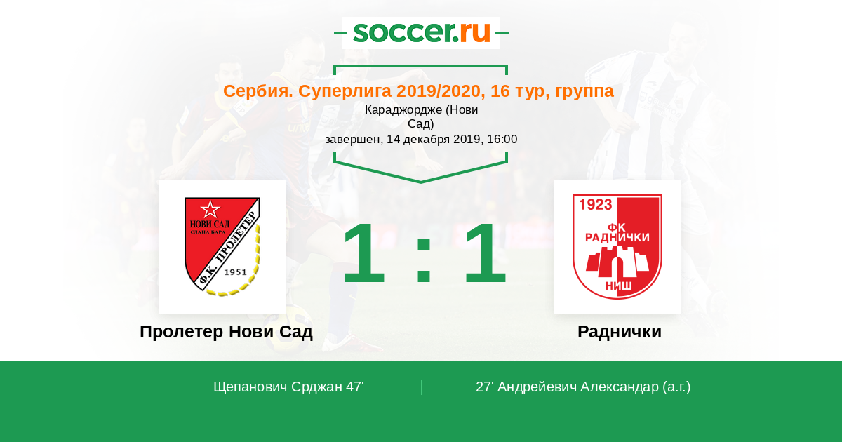 Протокол матча Пролетер Нови Сад против Раднички