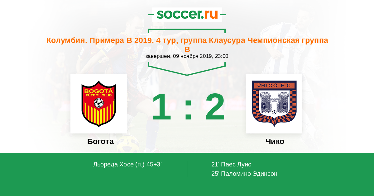 Протокол матча Богота против Чико