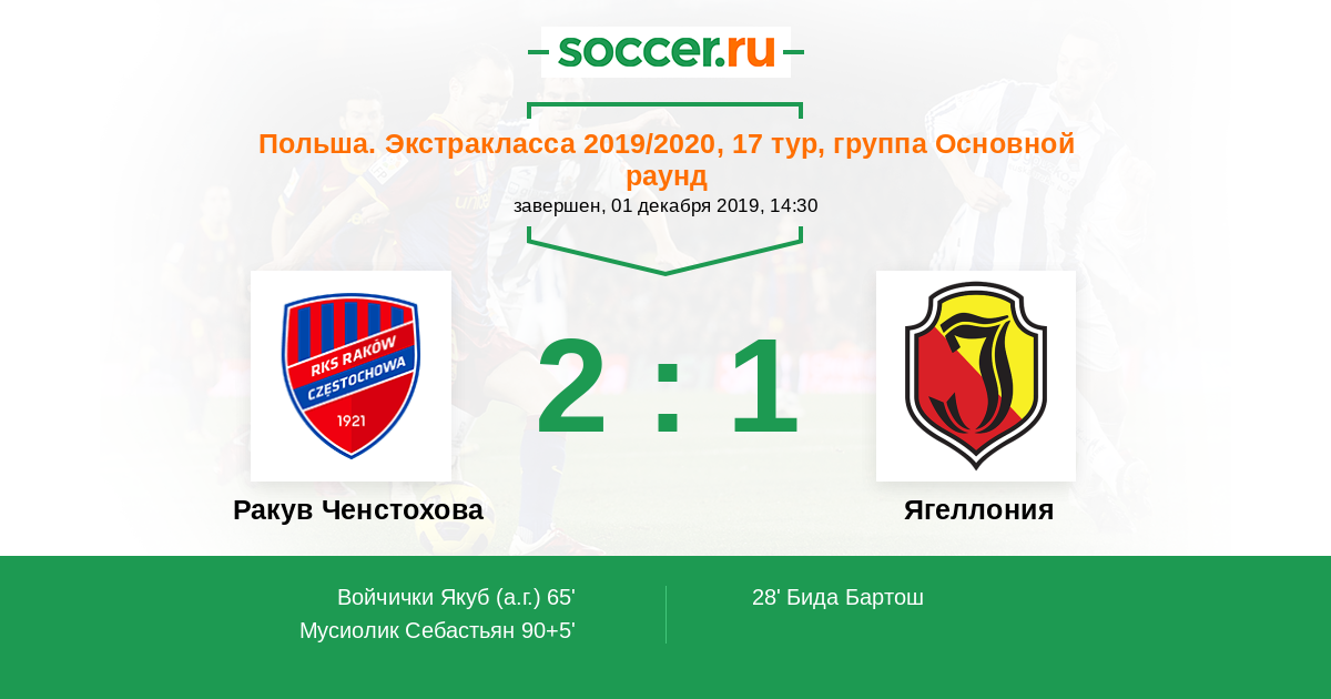Протокол матча Ракув Ченстохова против Ягеллония