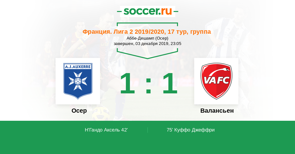 42' (1:0) Н'Гандо Аксель (27) (Ле Биан Микаэль (22))