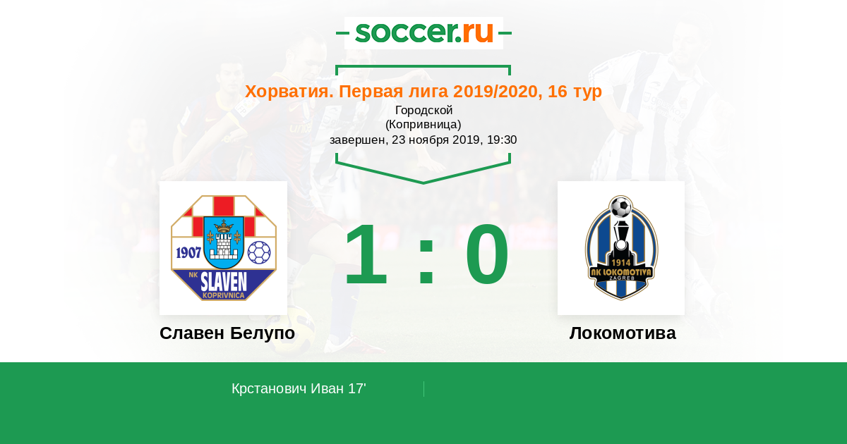 Протокол матча Славен Белупо против Локомотива