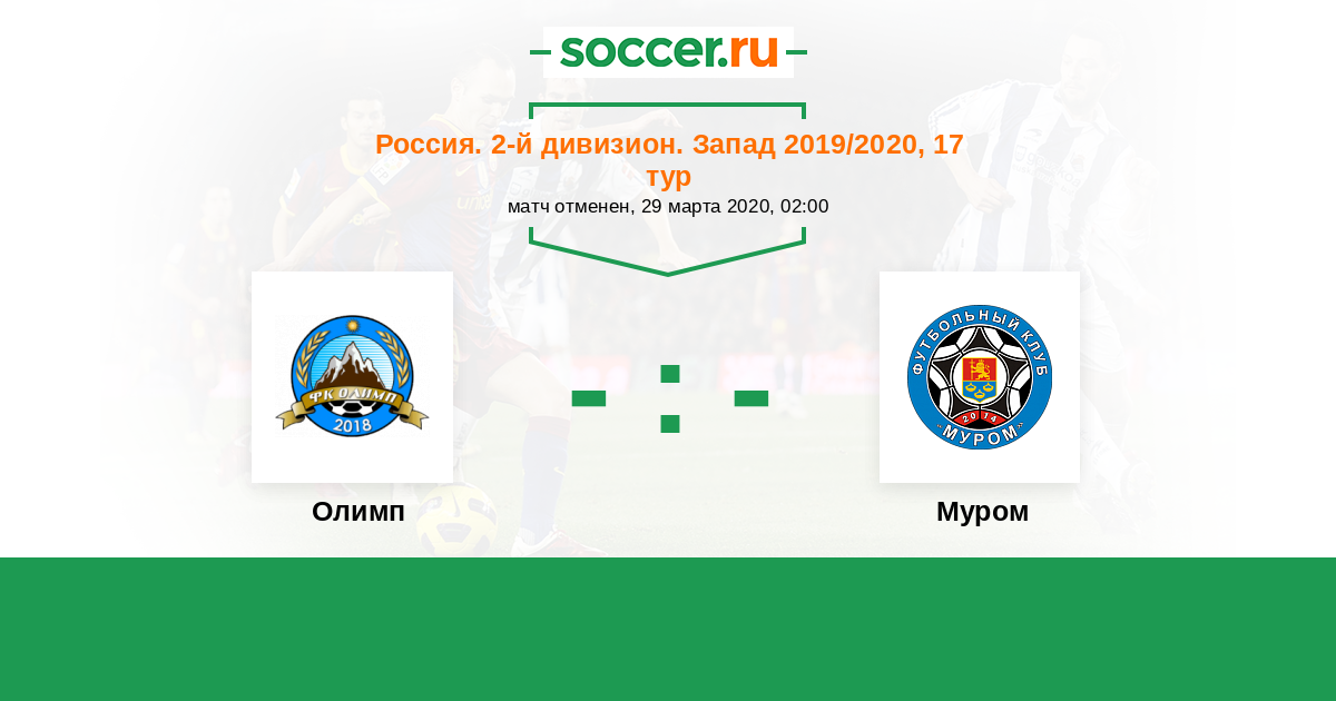 Россия. Вторая лига. Группа 2 16.08.2019 Муром Логотип футбольный клуб Муром 0:1 Логотип футбольный клуб Олимп (Химки) Олимп