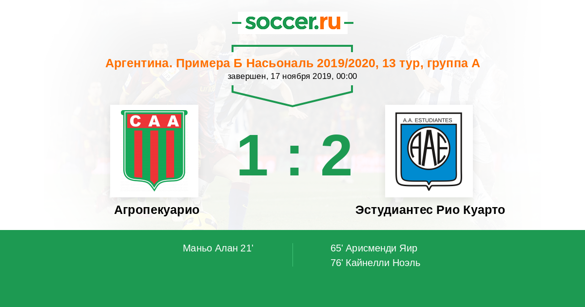Протокол матча Агропекуарио против Эстудиантес Рио Куарто