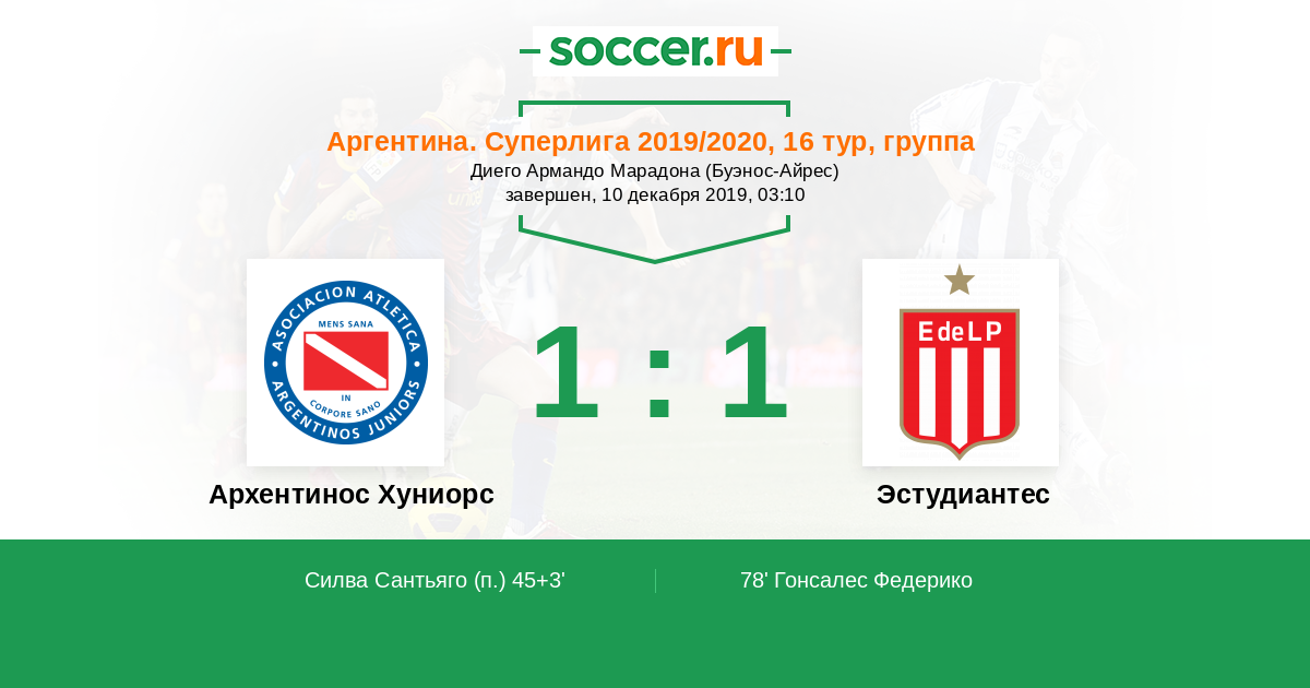 Протокол матча Архентинос Хуниорс против Эстудиантес