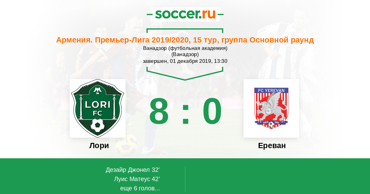 Протокол матча Лори против Ереван