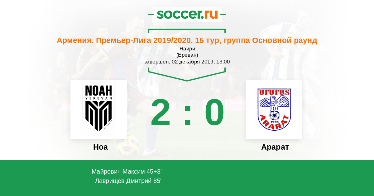 Протокол матча Арцах против Арарат