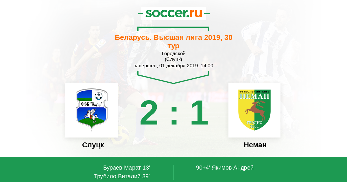 Протокол матча Слуцк против Неман