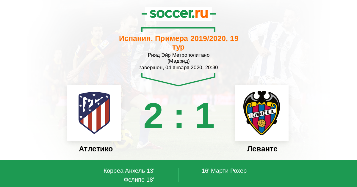Протокол матча Атлетико против Леванте