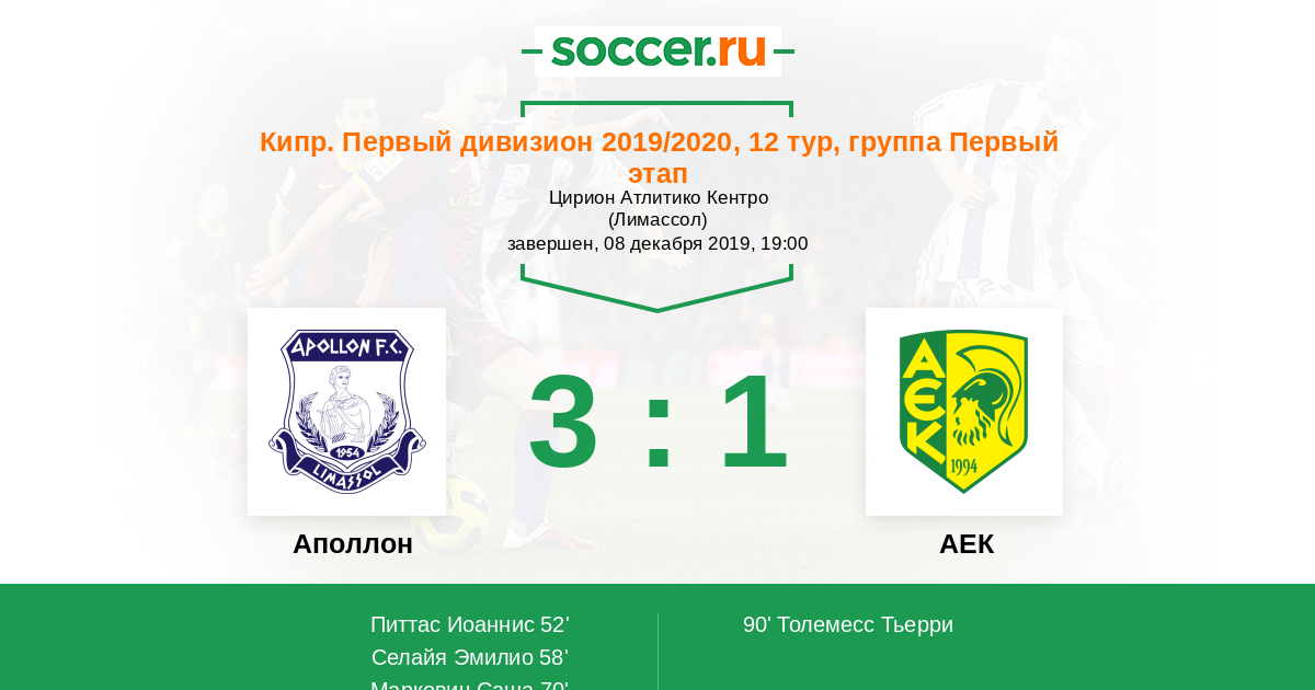 Протокол матча Аполлон против АЕК